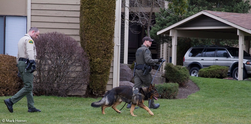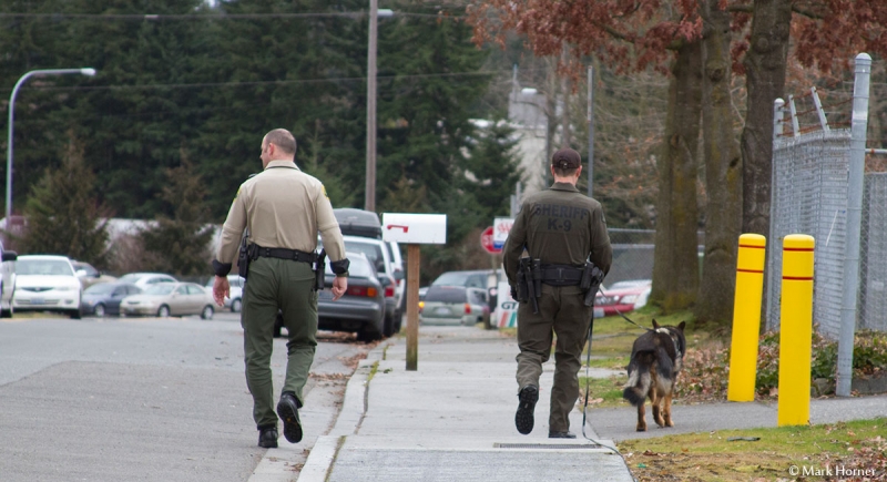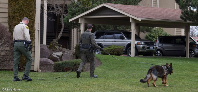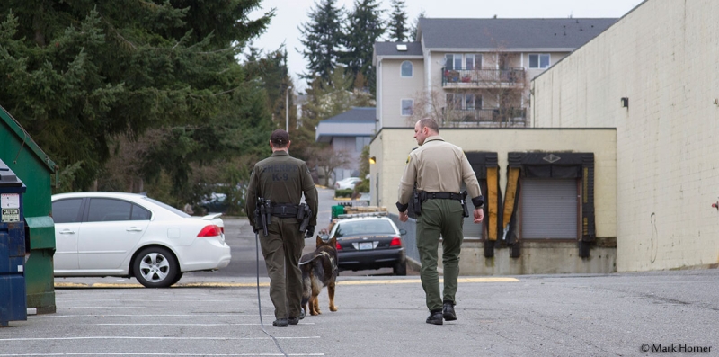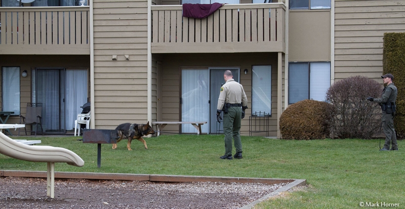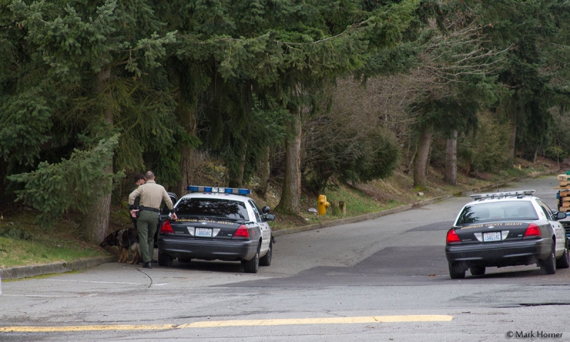 Deputies and a dog searched The Lakes by Mill Creek apartments, and nearby Albertsons grocery store and a storage business.