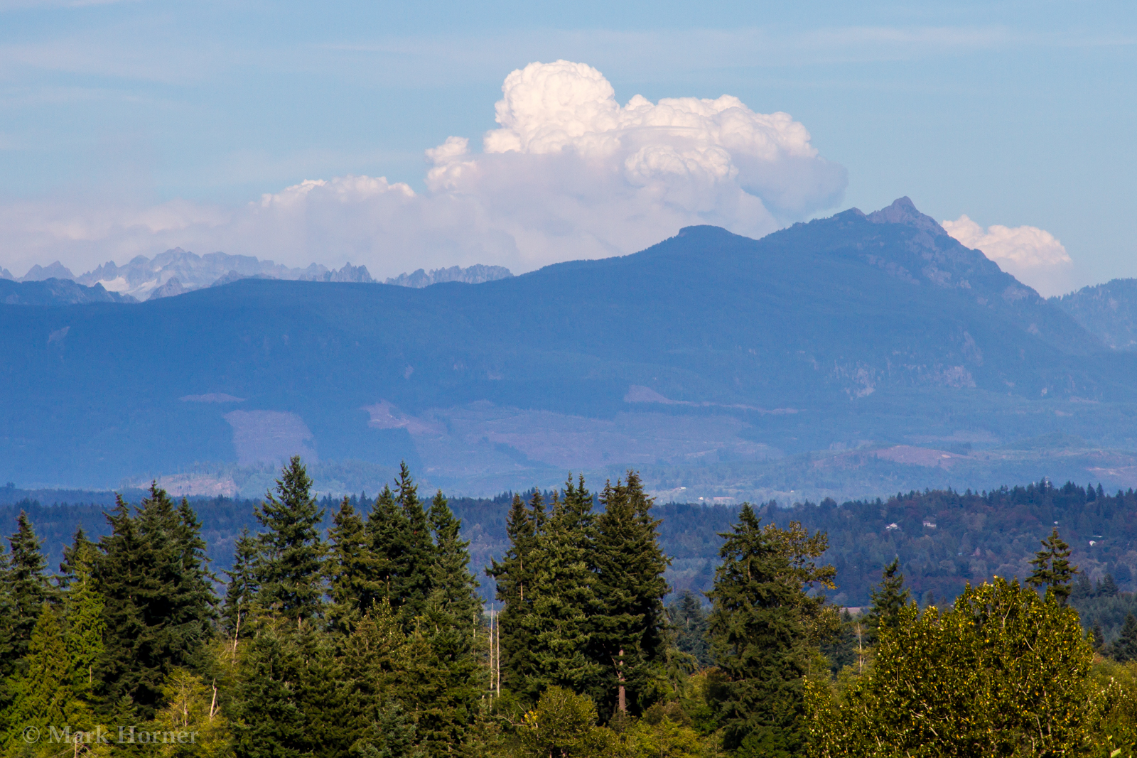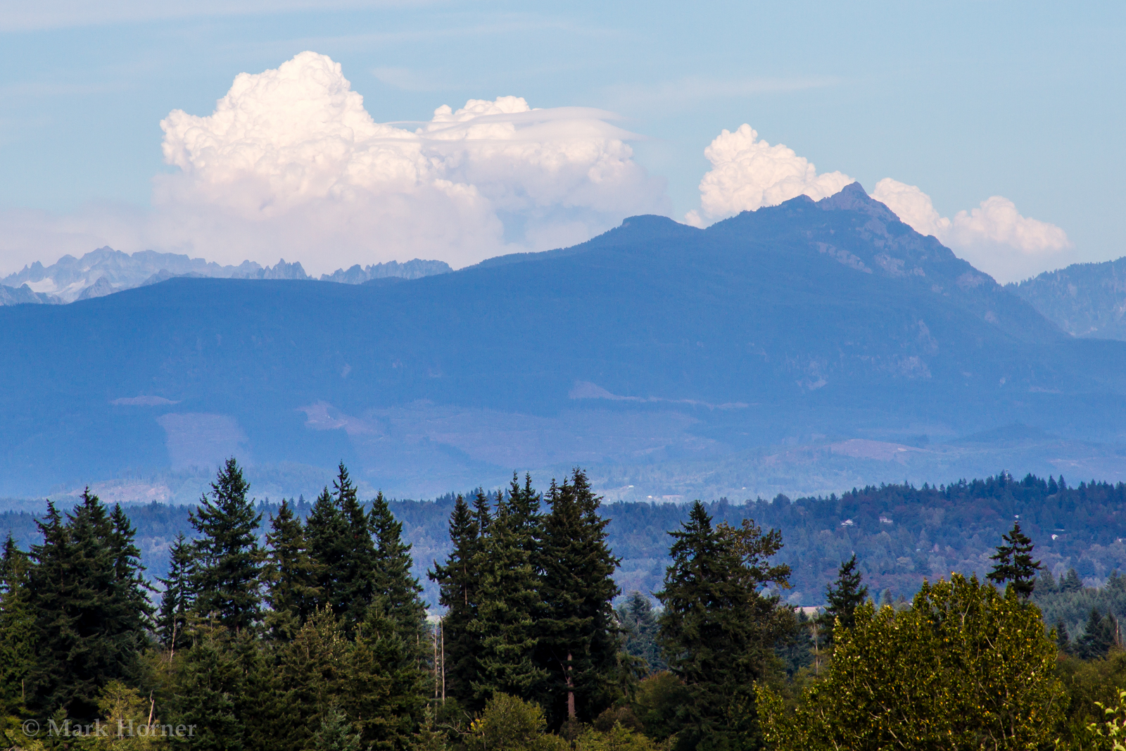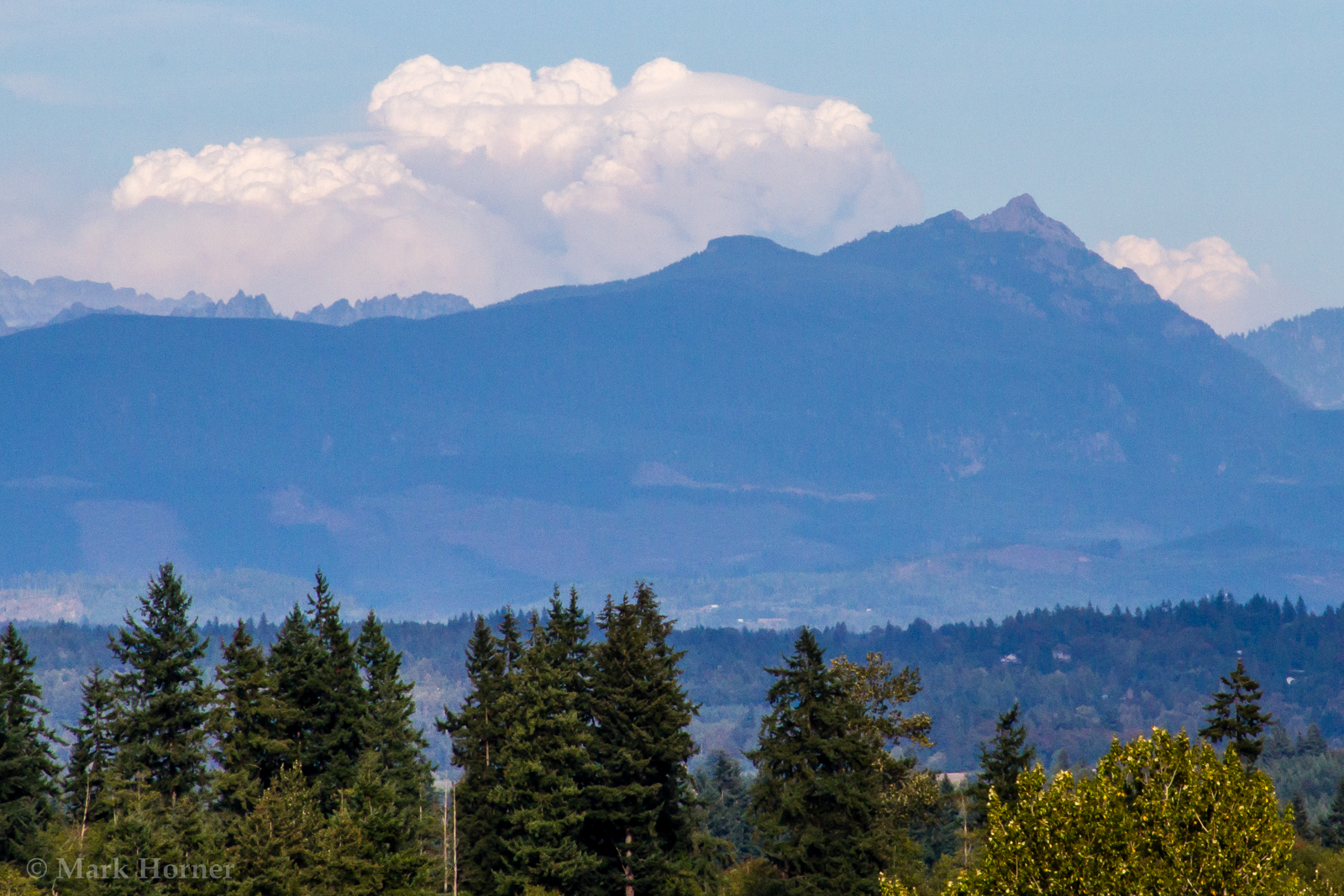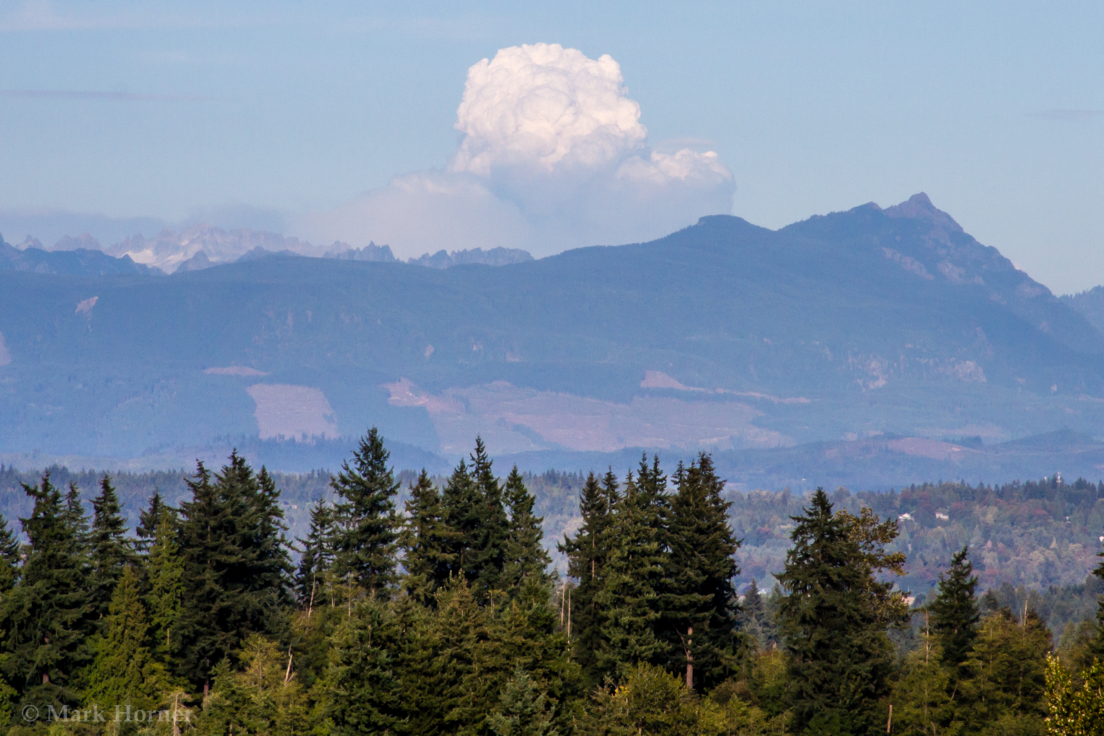(Snohomish, WA) Large clouds borne from the heat and rising thermals of a central Washington wildfire were visible in the Puget Sound area on Tuesday afternoon and early evening.