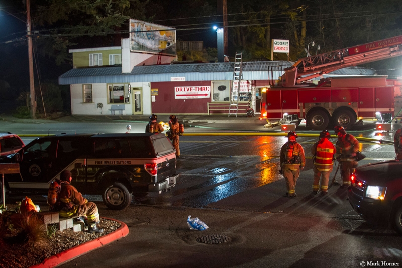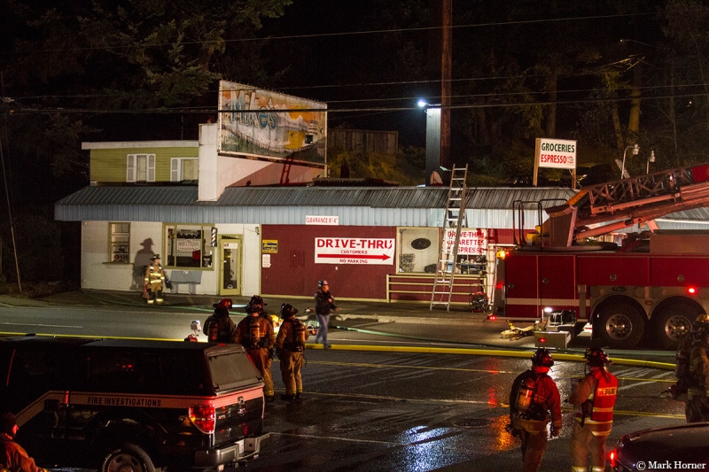 No one was injured in the fire at Mike’s Deli-Mart at 23221 Edmonds Way.