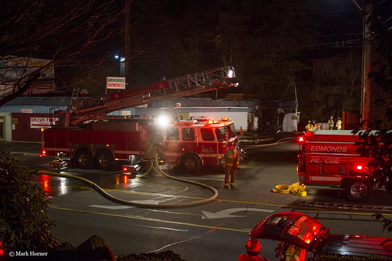 Edmonds Way was closed due to the 2-alarm fire.